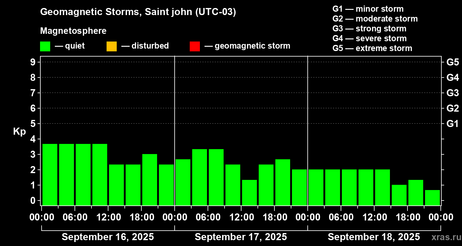 Geomagnetic storms in Saint john — Sep 18, 2025