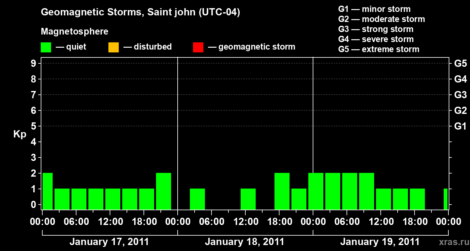 Geomagnetic storms in Saint john — Jan 19, 2011