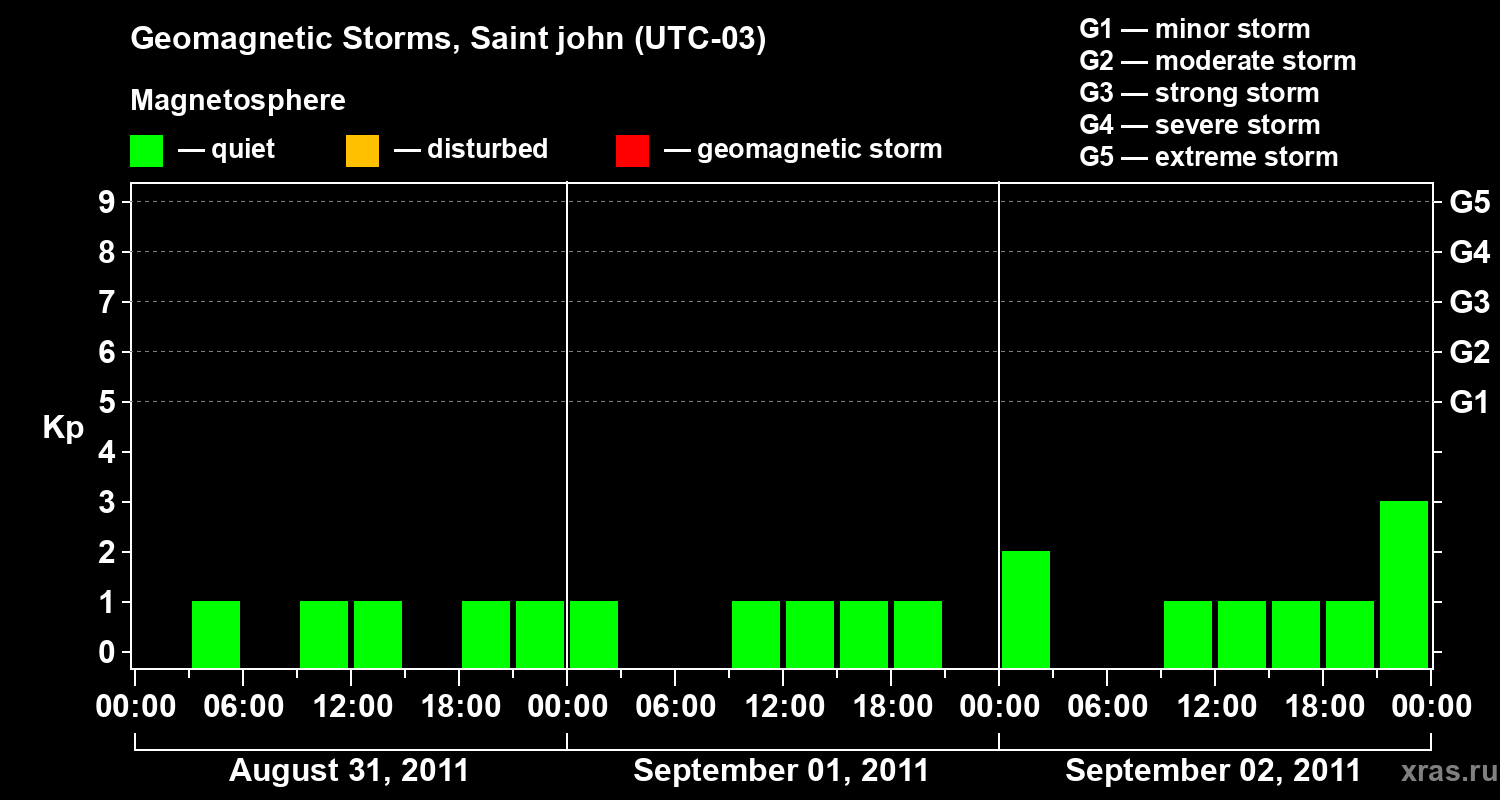 Geomagnetic storms in Saint john — Sep 02, 2011