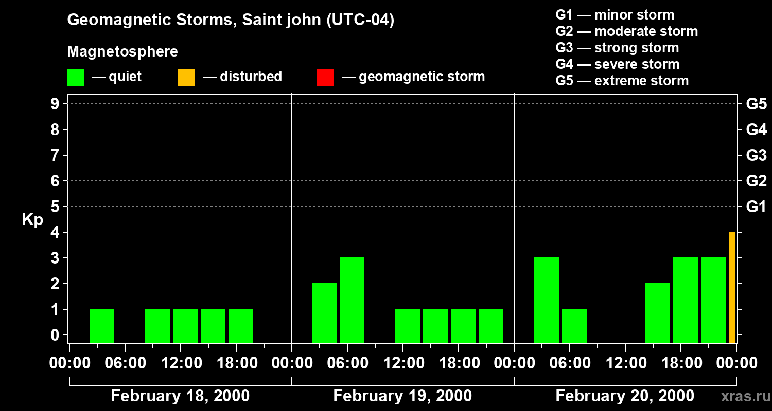 Geomagnetic storms in Saint john — Feb 20, 2000
