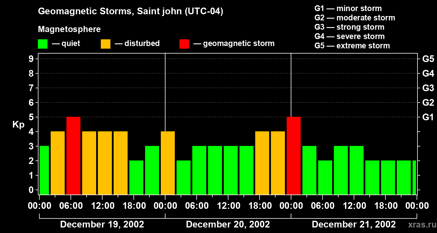 Geomagnetic storms in Saint john — Dec 21, 2002