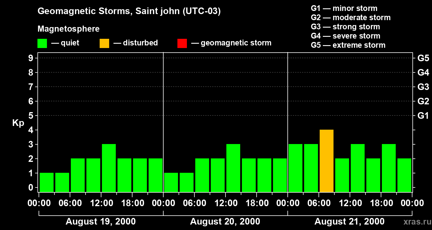 Geomagnetic storms in Saint john — Aug 21, 2000