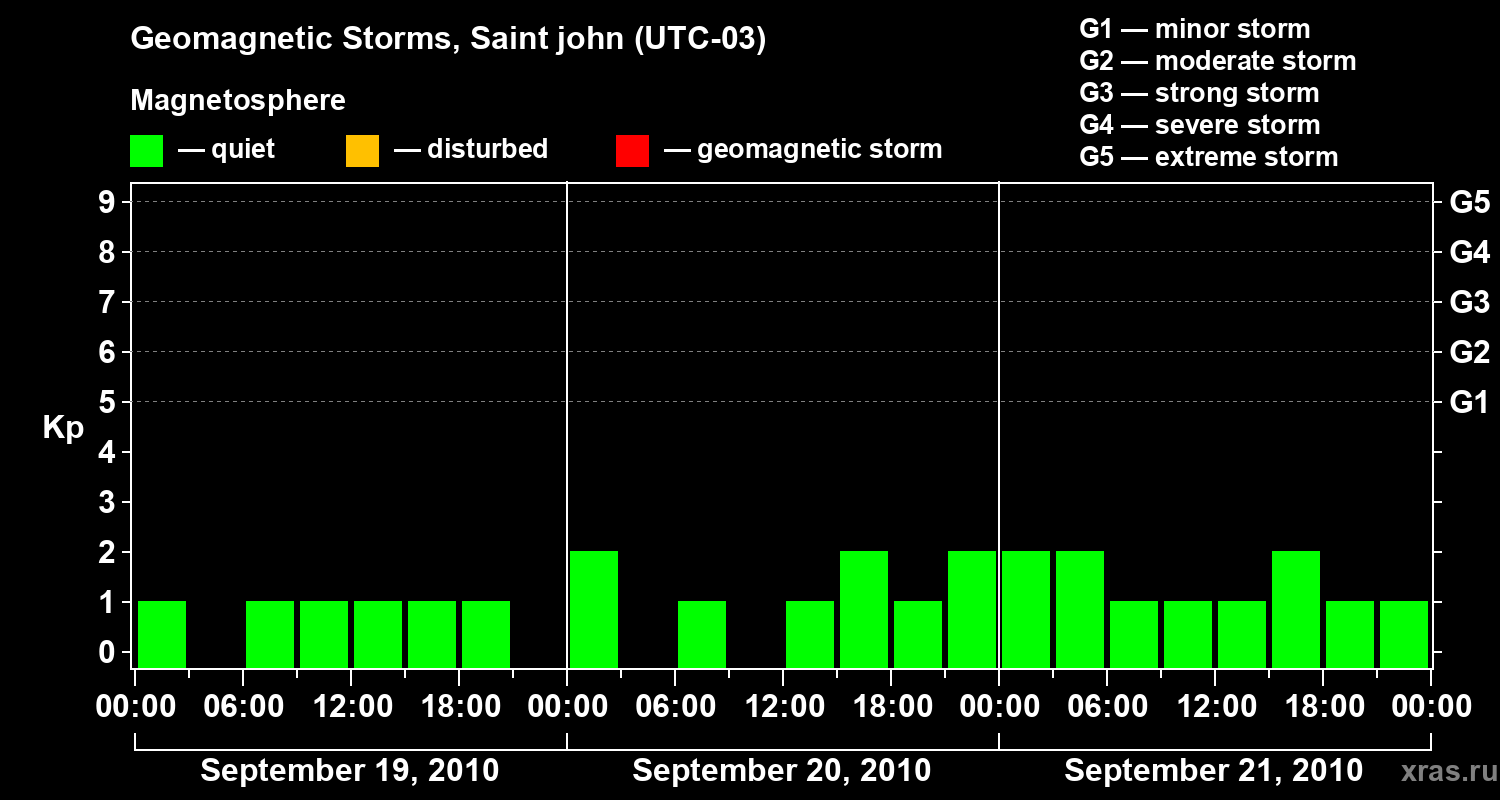 Geomagnetic storms in Saint john — Sep 21, 2010