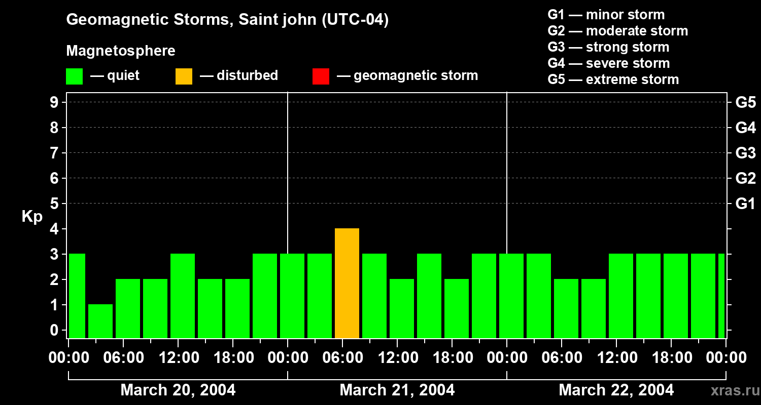 Geomagnetic storms in Saint john — Mar 22, 2004