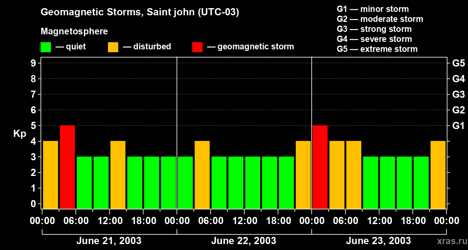 Geomagnetic storms in Saint john — Jun 23, 2003