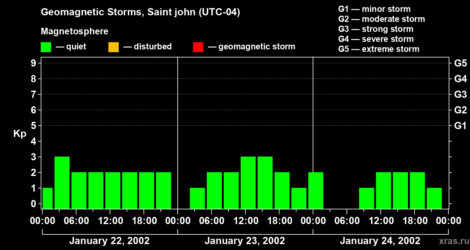 Geomagnetic storms in Saint john — Jan 24, 2002