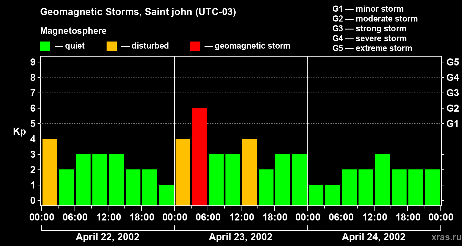 Geomagnetic storms in Saint john — Apr 24, 2002
