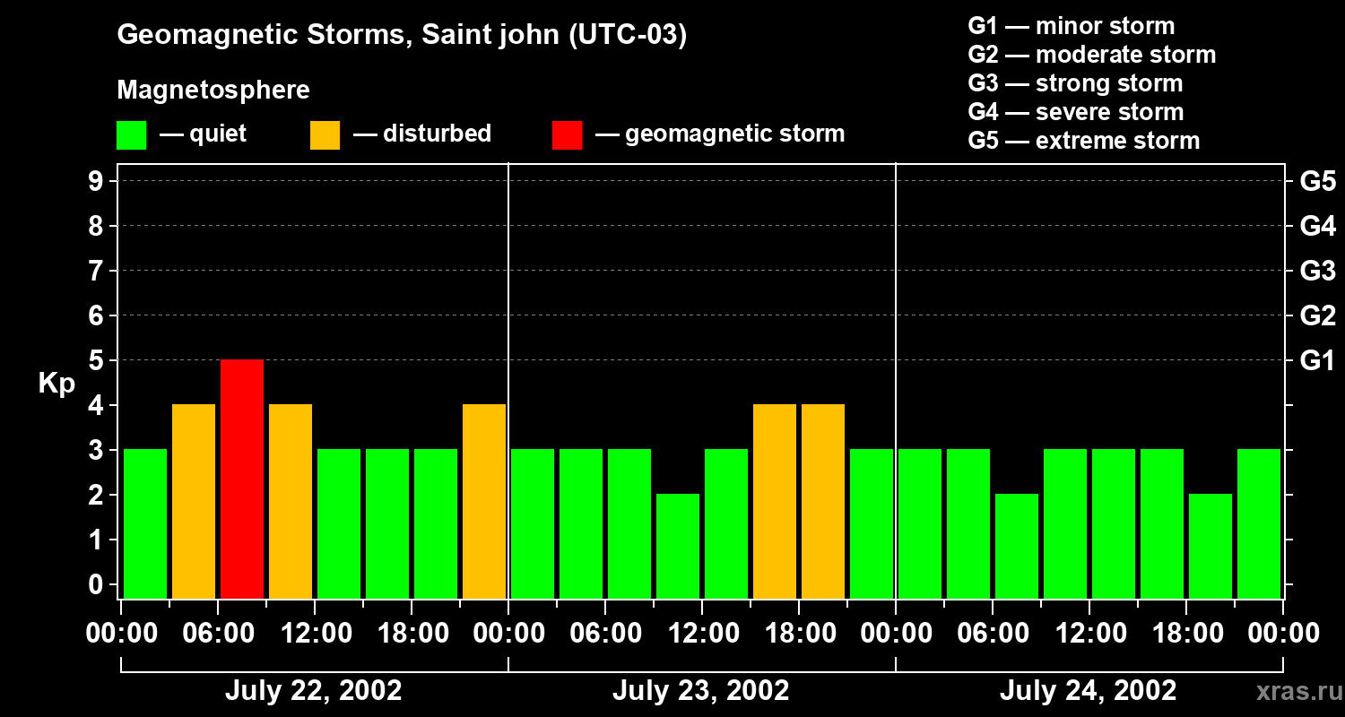 Geomagnetic storms in Saint john — Jul 24, 2002