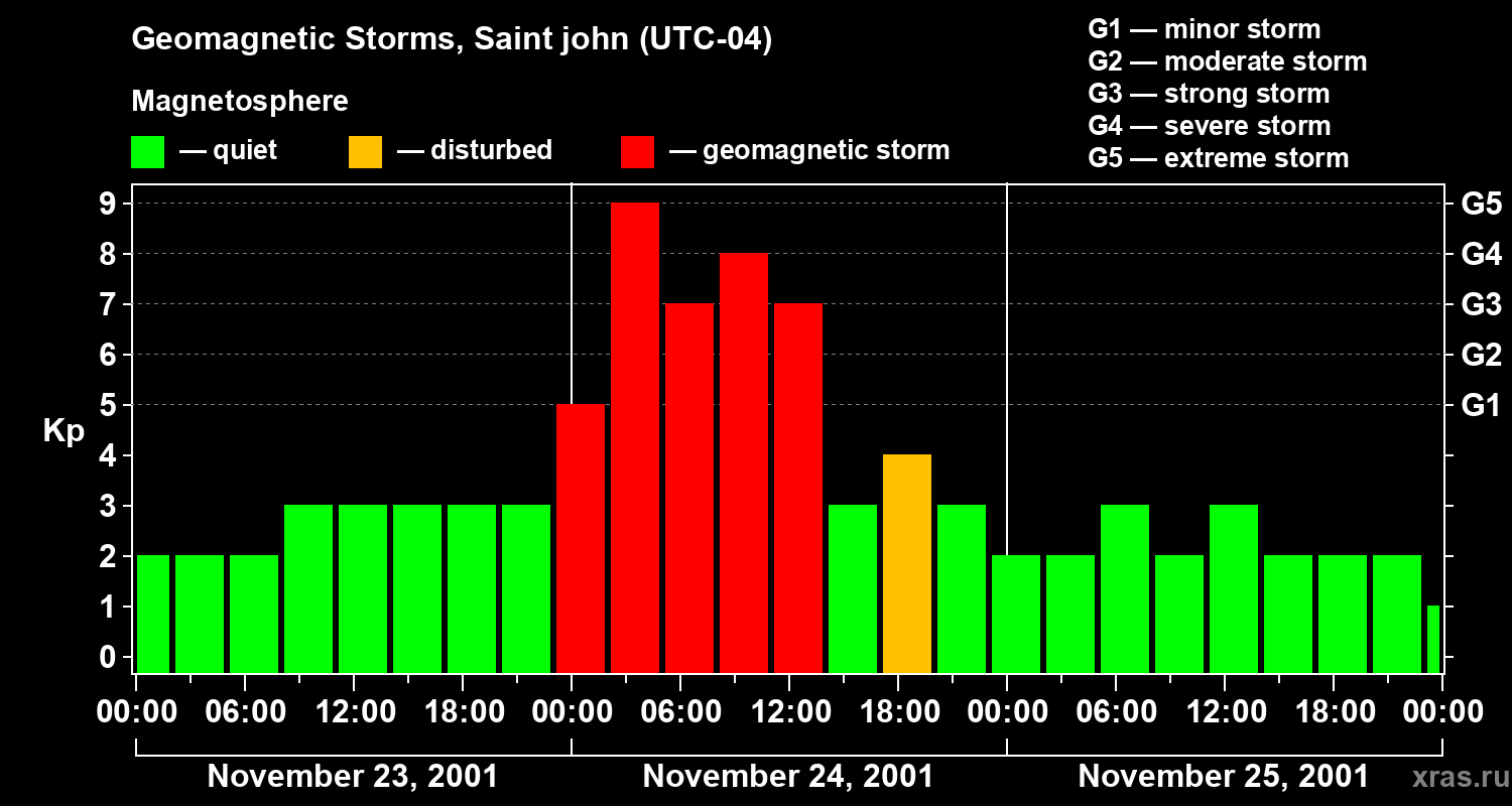 Geomagnetic storms in Saint john — Nov 25, 2001