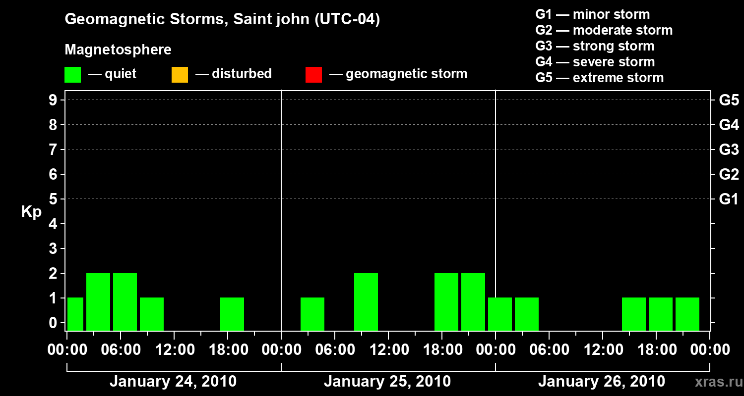 Geomagnetic storms in Saint john — Jan 26, 2010