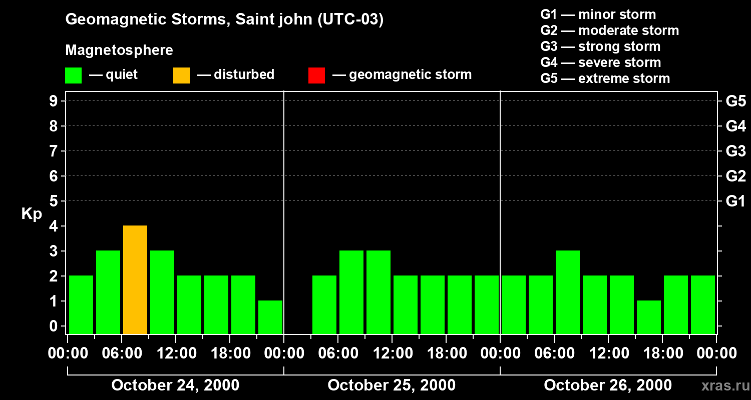 Geomagnetic storms in Saint john — Oct 26, 2000