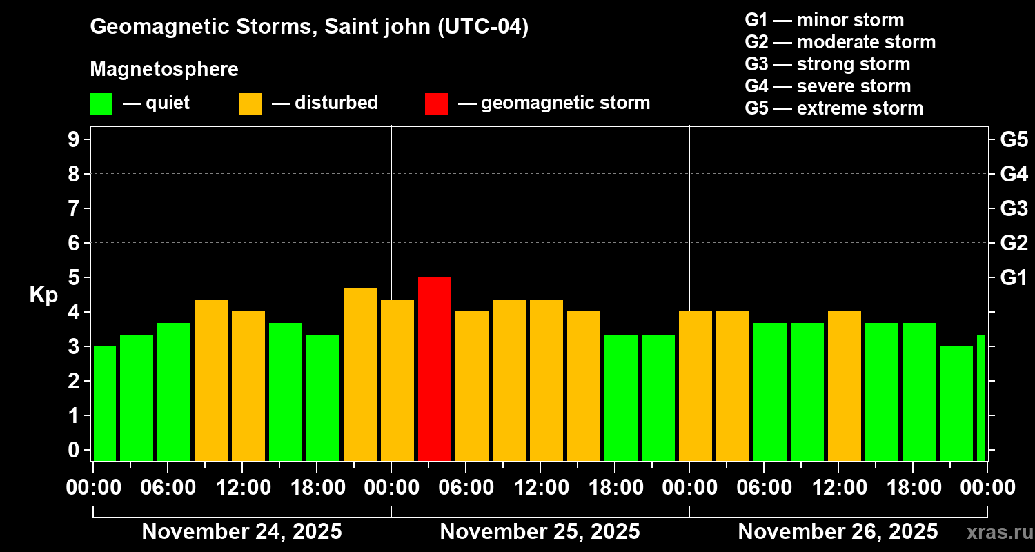 Geomagnetic storms in Saint john — Nov 26, 2025