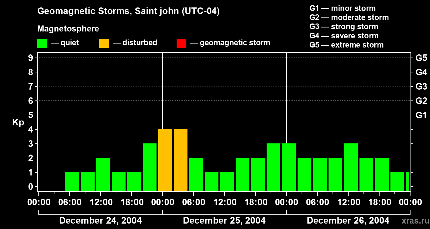 Geomagnetic storms in Saint john — Dec 26, 2004