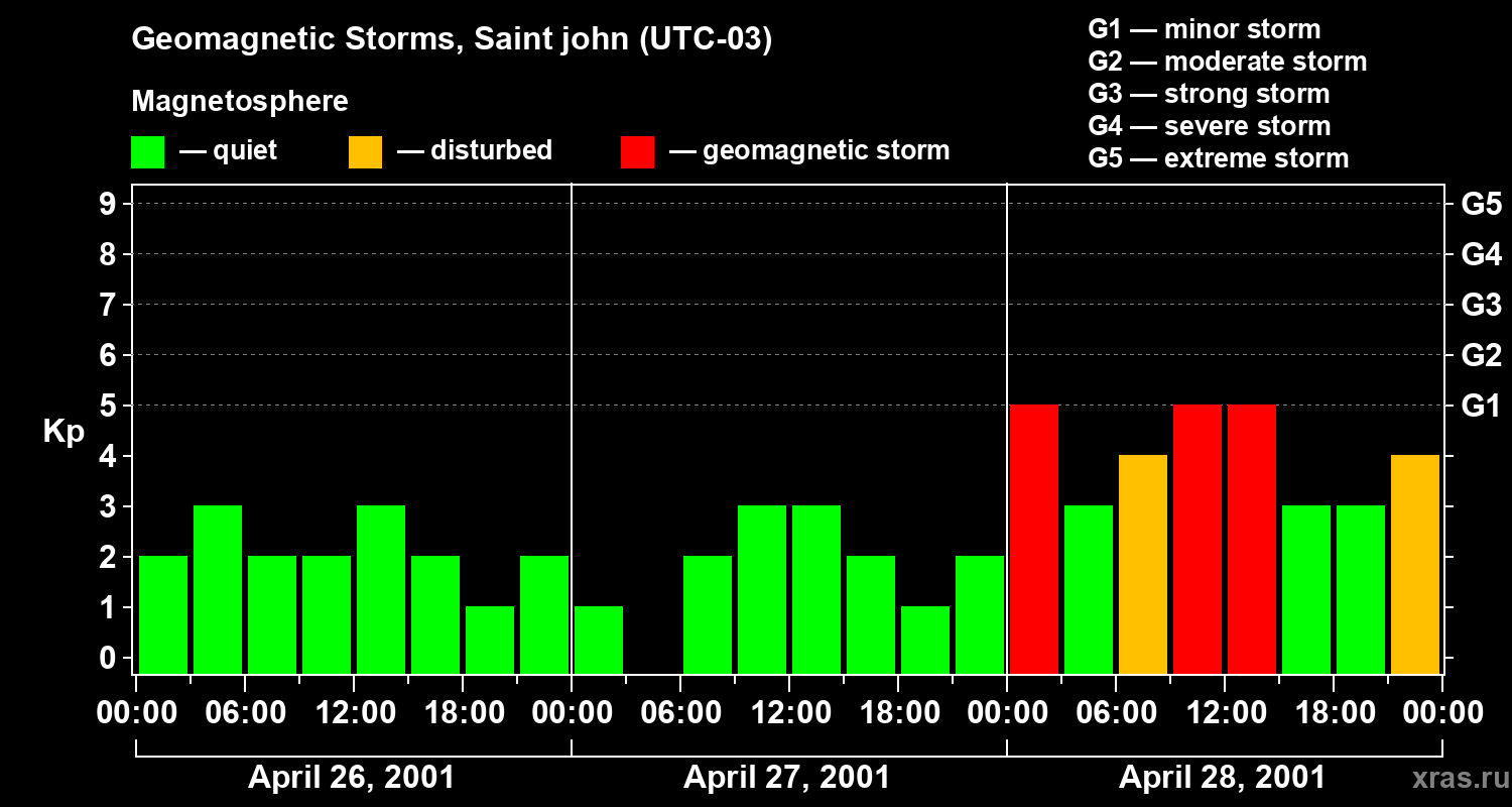 Geomagnetic storms in Saint john — Apr 28, 2001