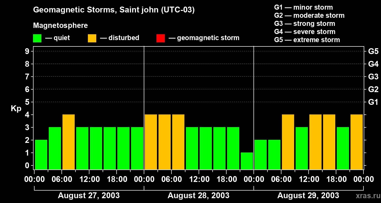 Geomagnetic storms in Saint john on Aug 29, 2003