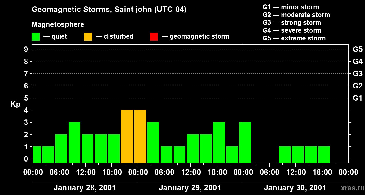 Geomagnetic storms in Saint john — Jan 30, 2001