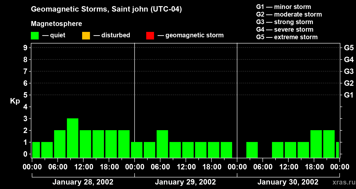 Geomagnetic storms in Saint john — Jan 30, 2002