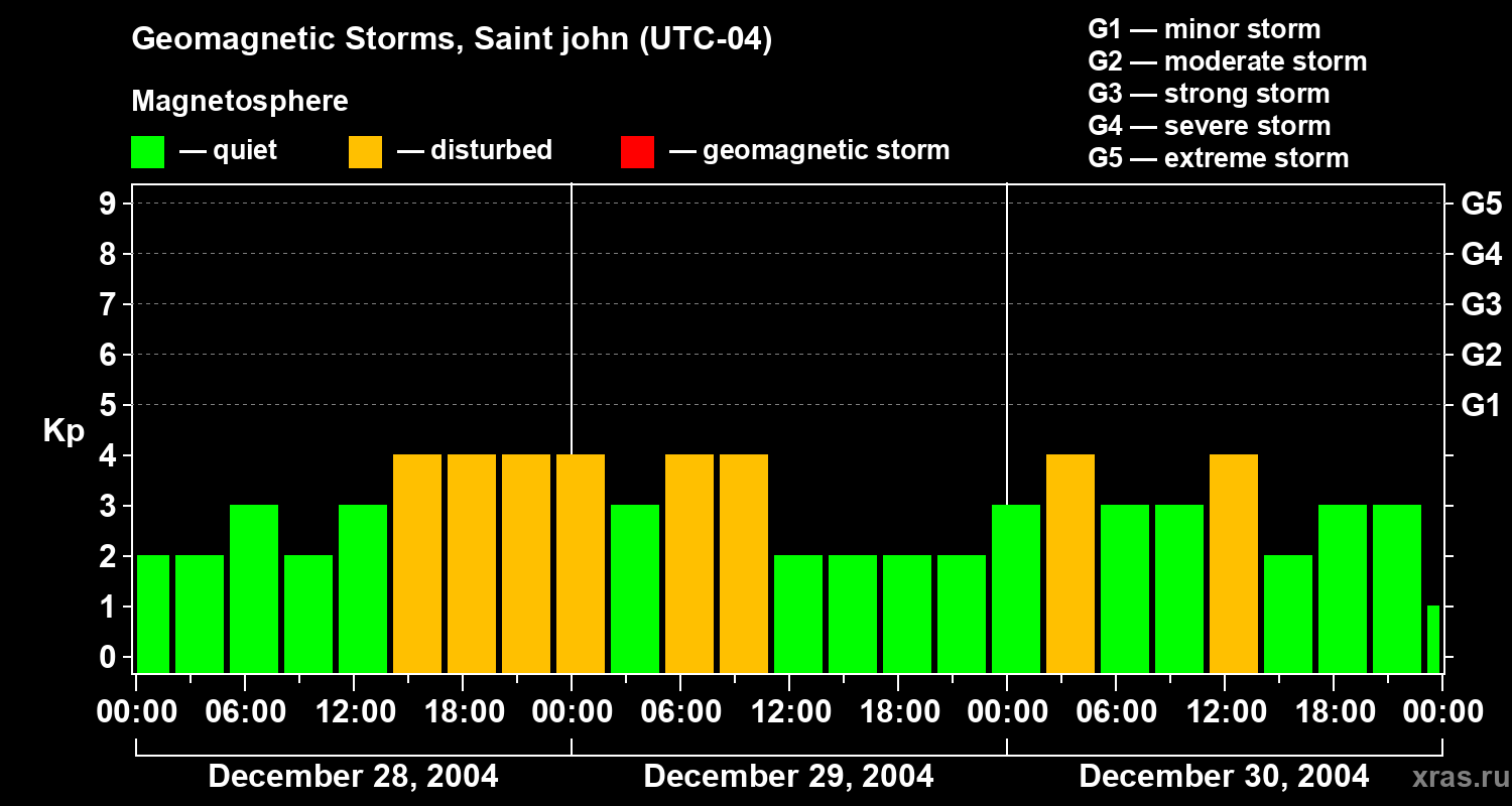Geomagnetic storms in Saint john — Dec 30, 2004
