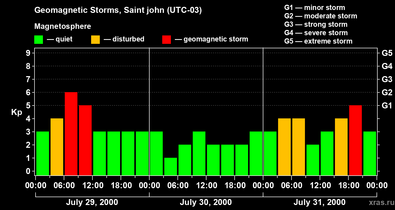 Geomagnetic storms in Saint john — Jul 31, 2000