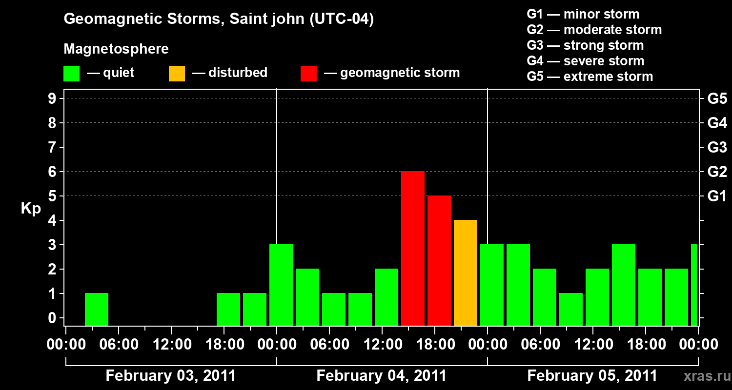 Geomagnetic storms in Saint john — Feb 05, 2011