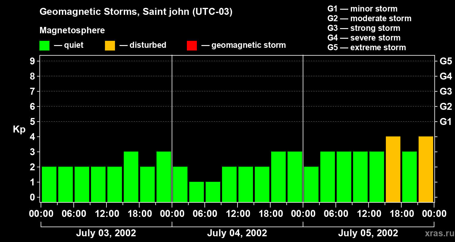 Geomagnetic storms in Saint john on Jul 05, 2002