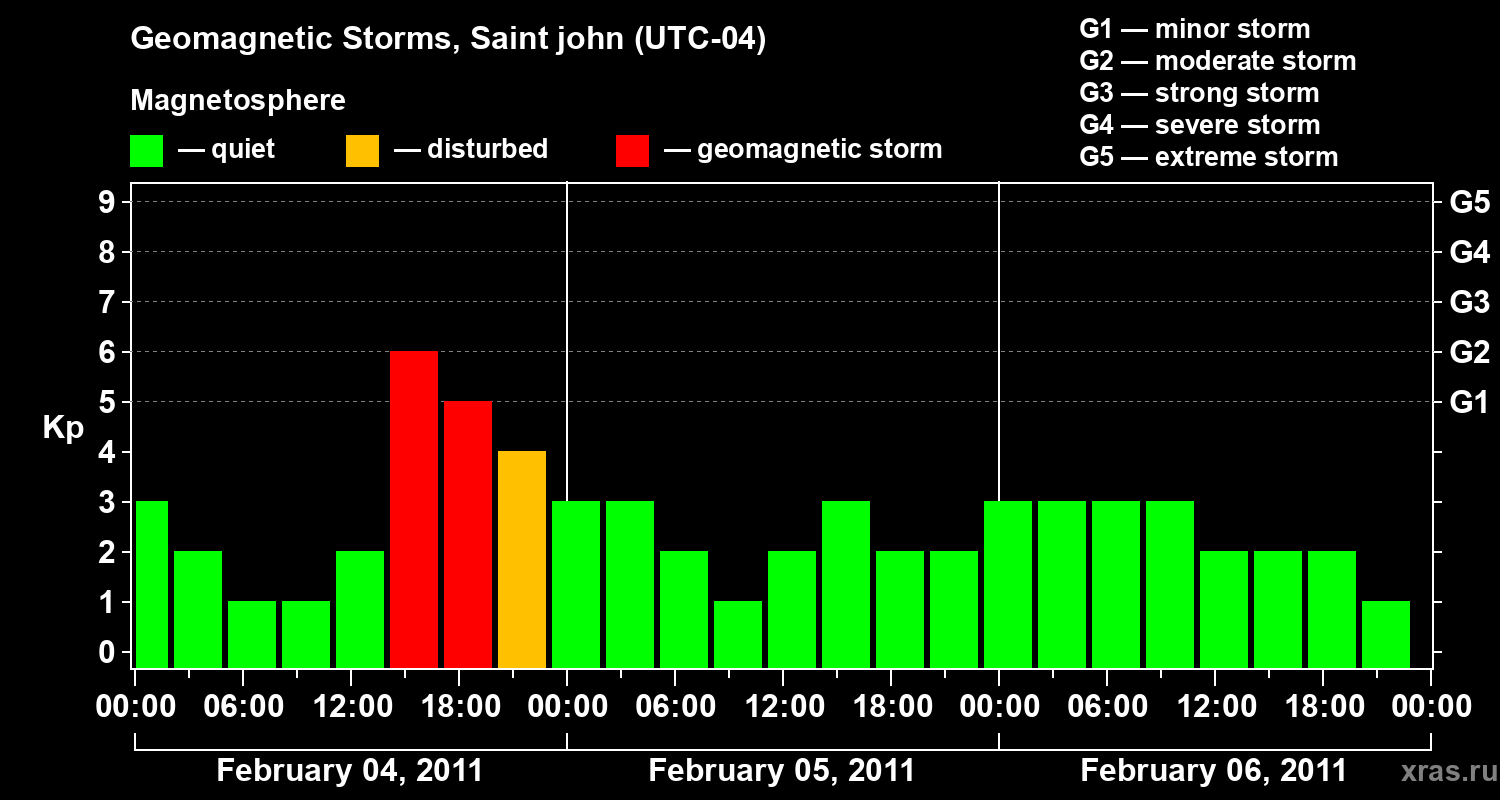Geomagnetic storms in Saint john — Feb 06, 2011