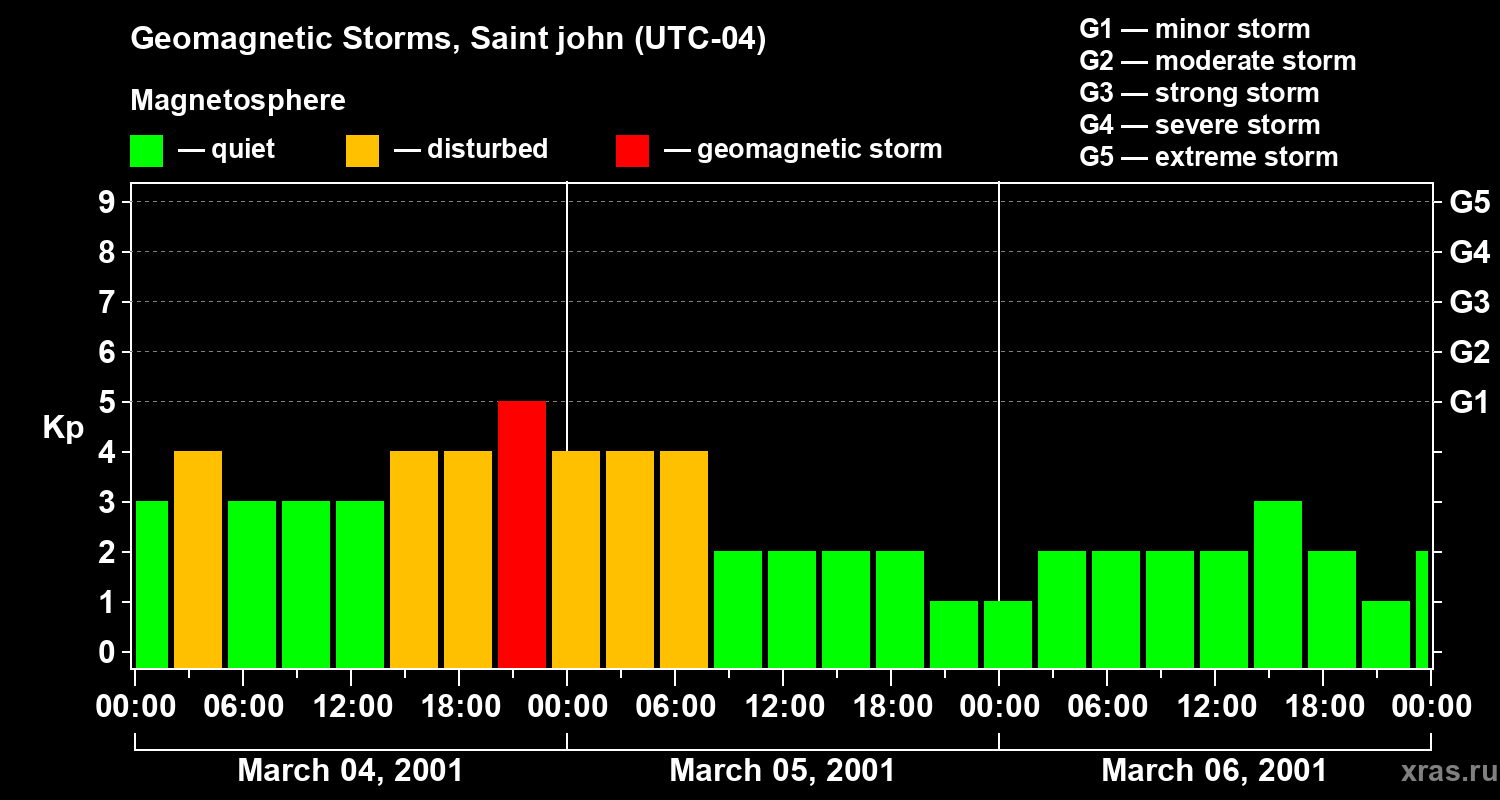 Geomagnetic storms in Saint john — Mar 06, 2001