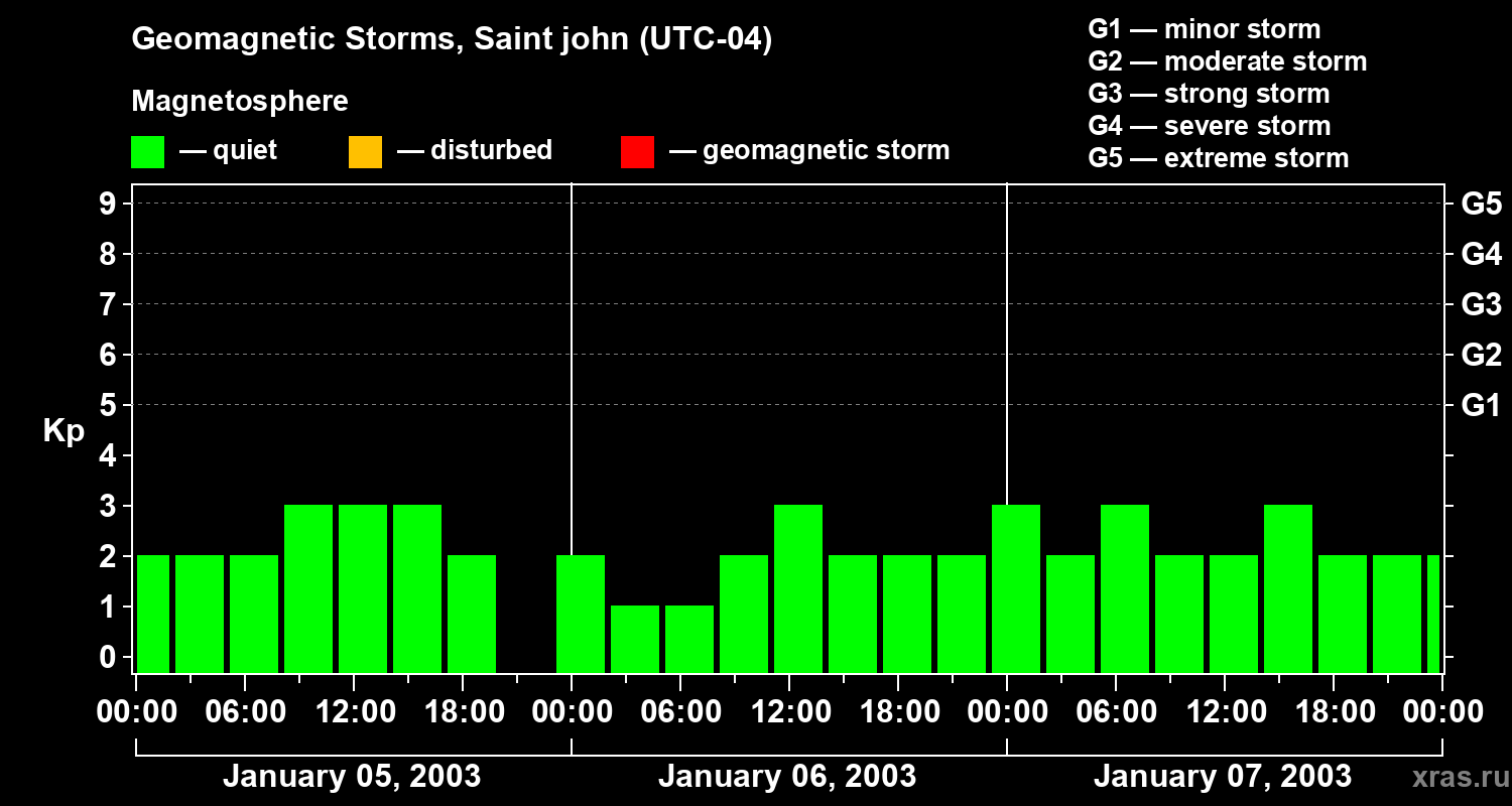 Geomagnetic storms in Saint john on Jan 07, 2003
