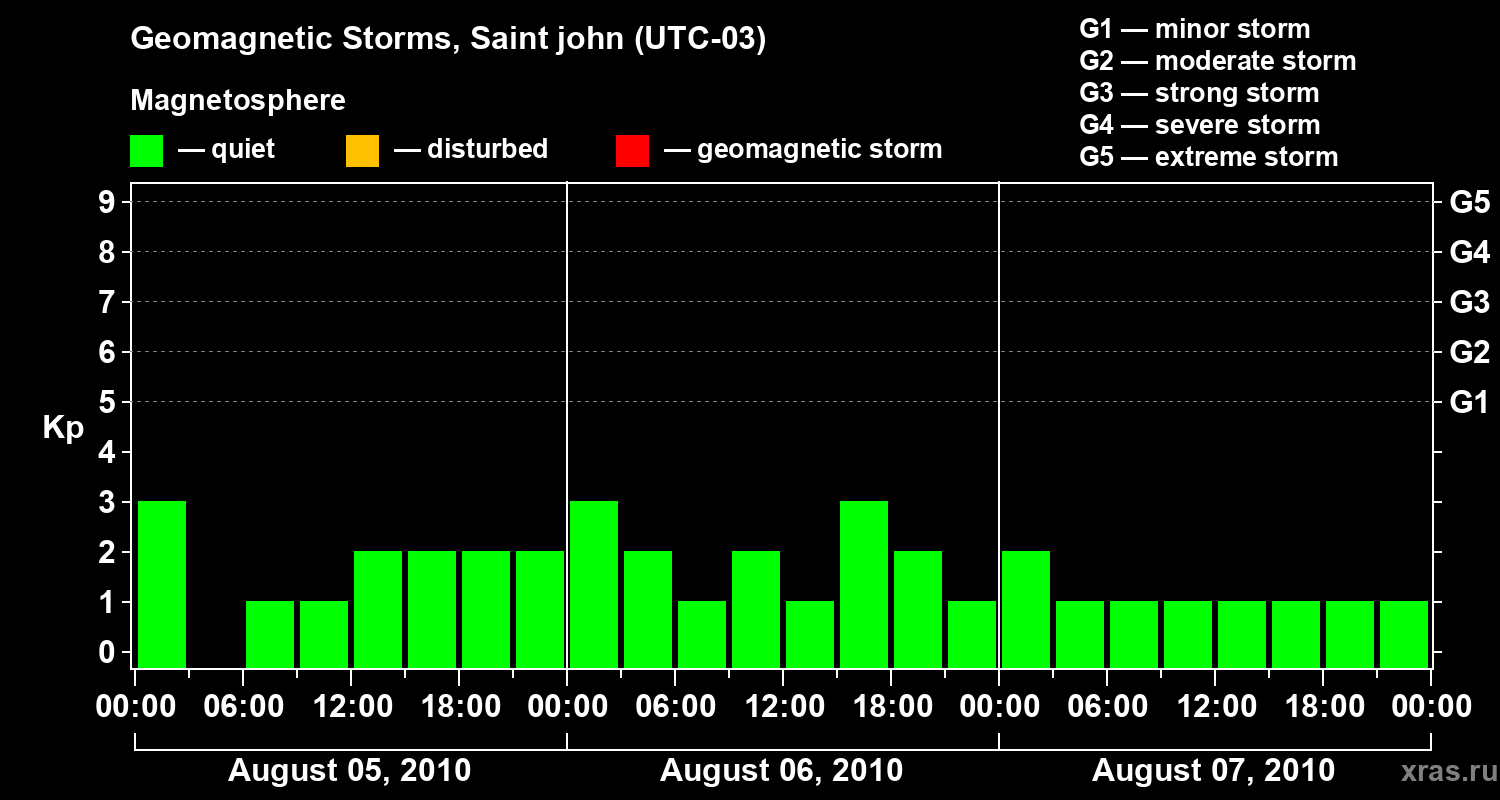 Geomagnetic storms in Saint john — Aug 07, 2010