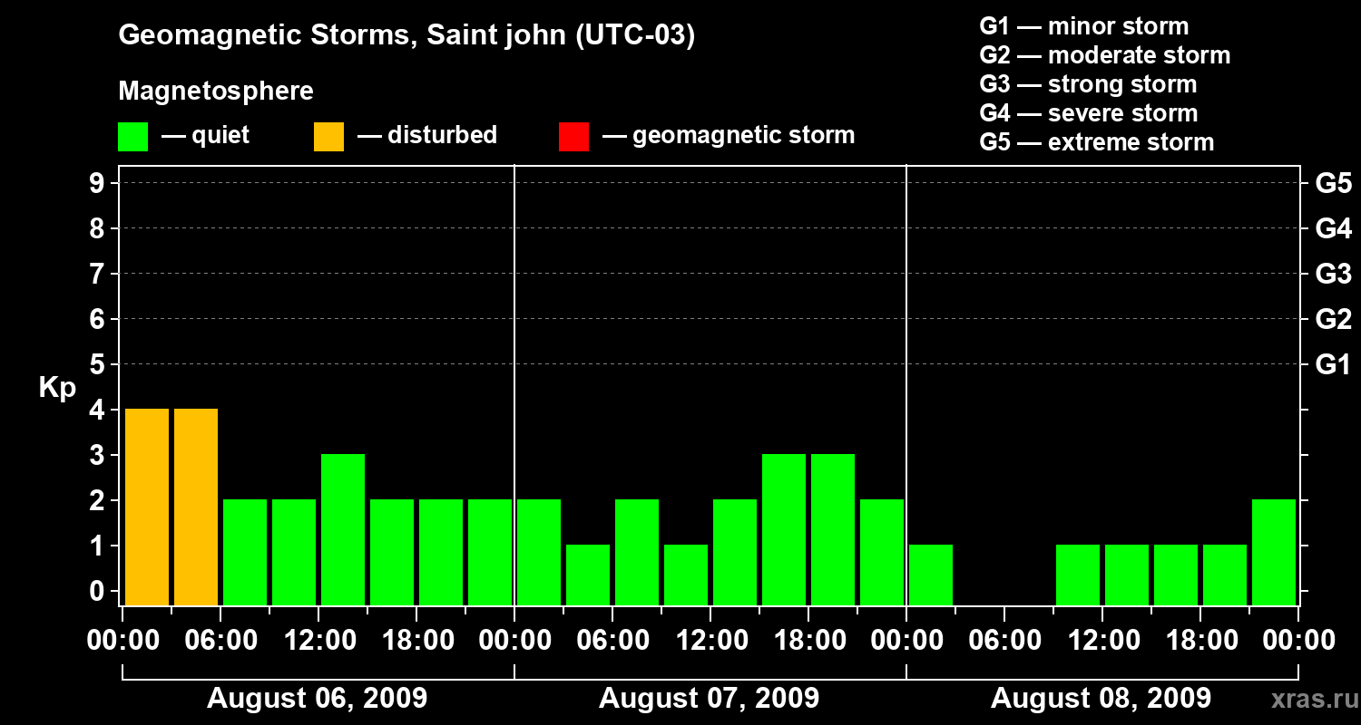 Geomagnetic storms in Saint john — Aug 08, 2009