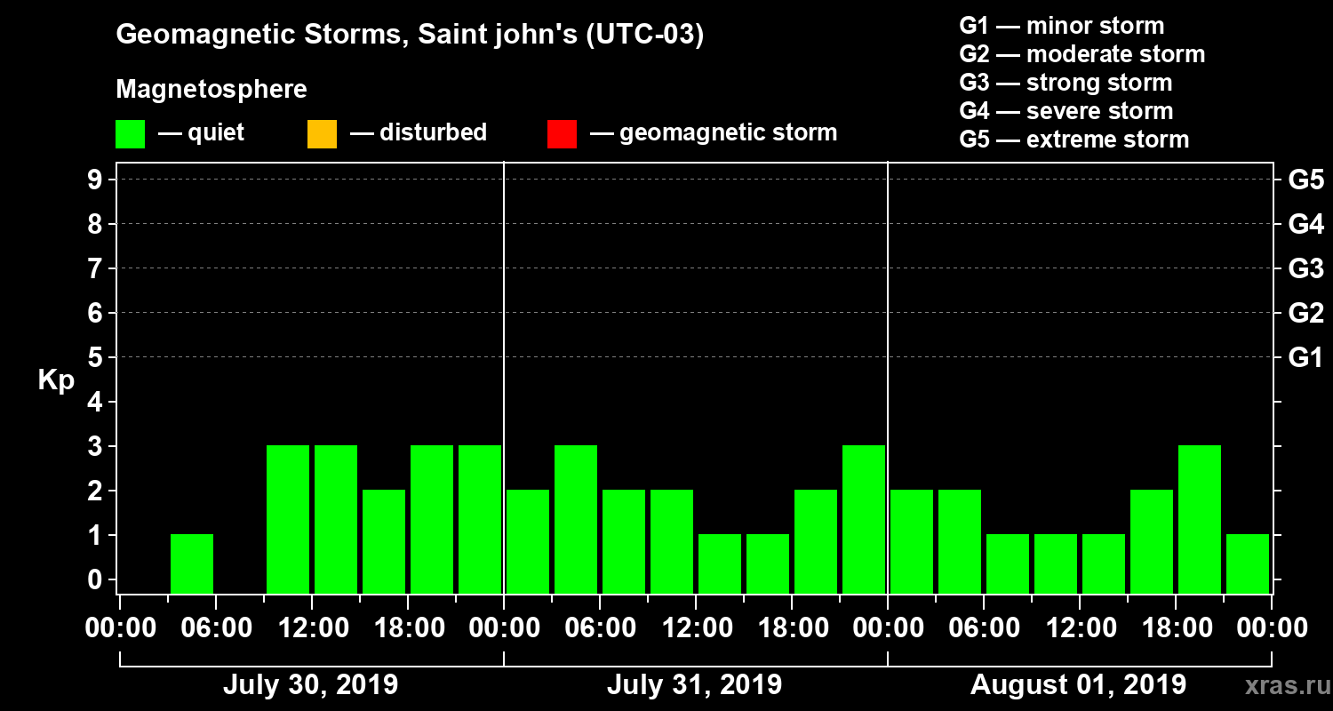 Geomagnetic storms in Saint john's — Aug 01, 2019