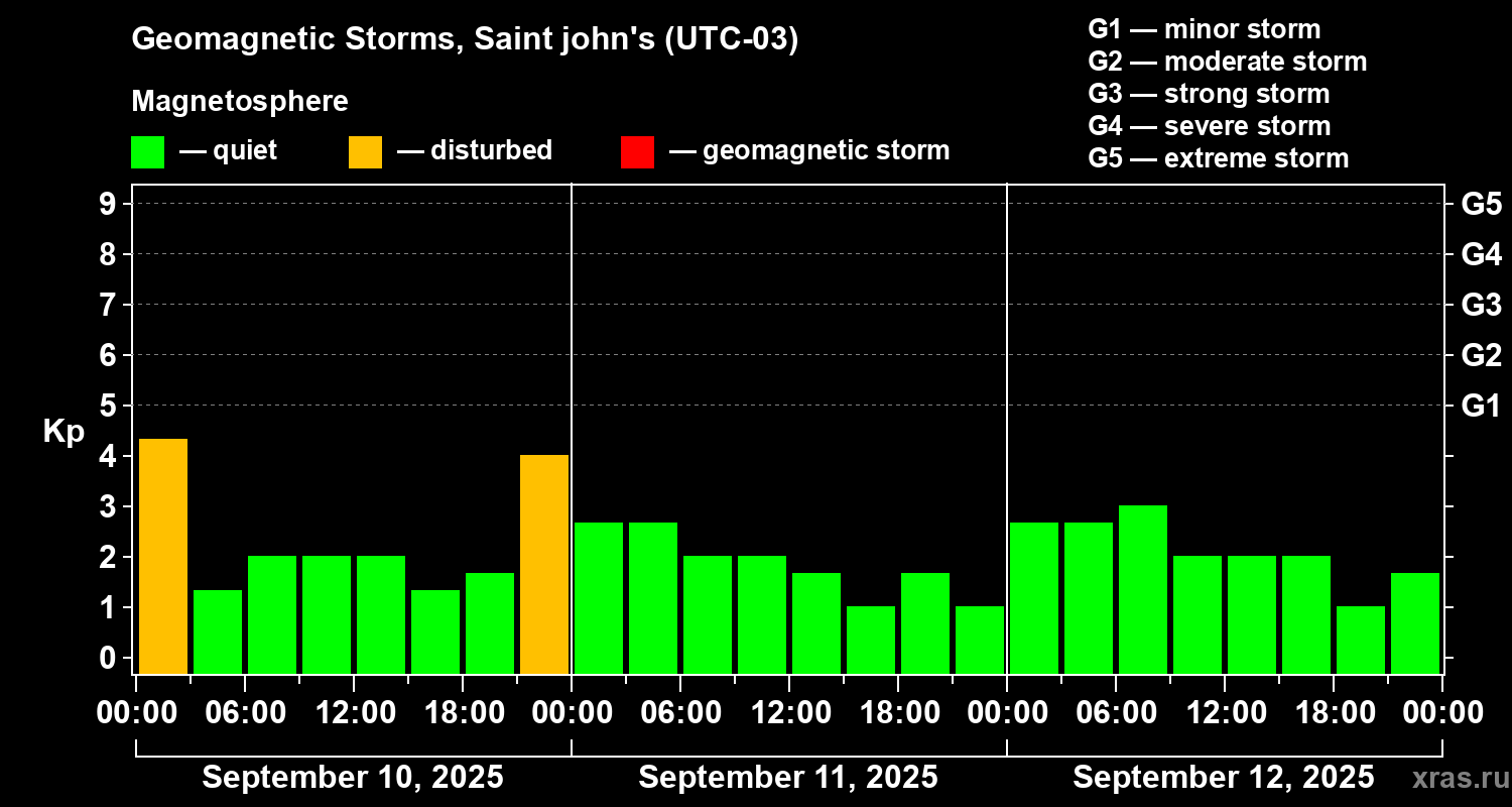 Geomagnetic storms in Saint john's — Sep 12, 2025