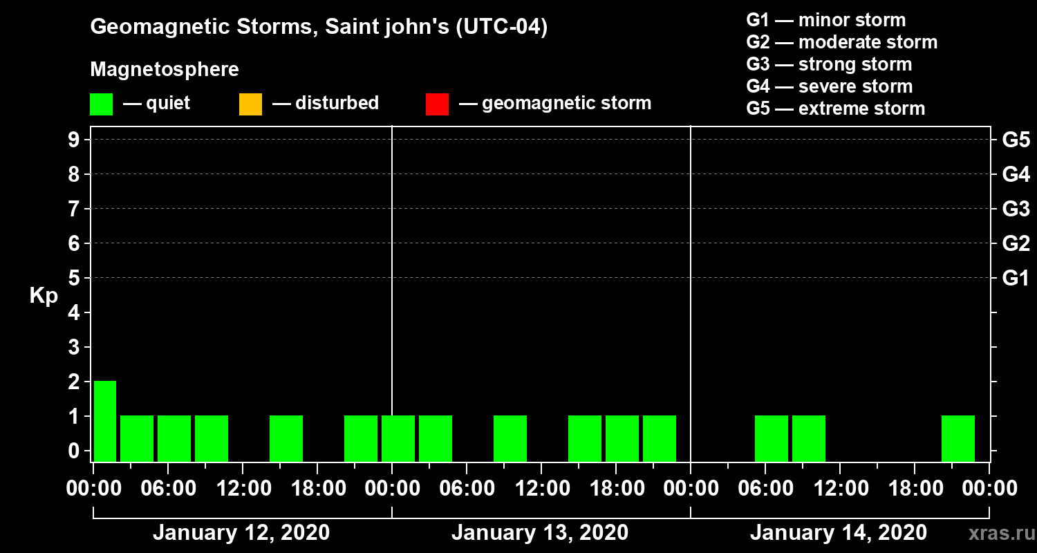 Geomagnetic storms in Saint john's on Jan 14, 2020