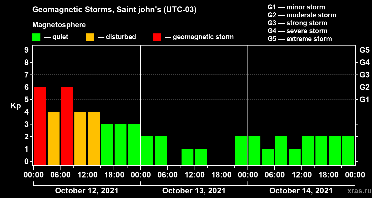Geomagnetic storms in Saint john's — Oct 14, 2021