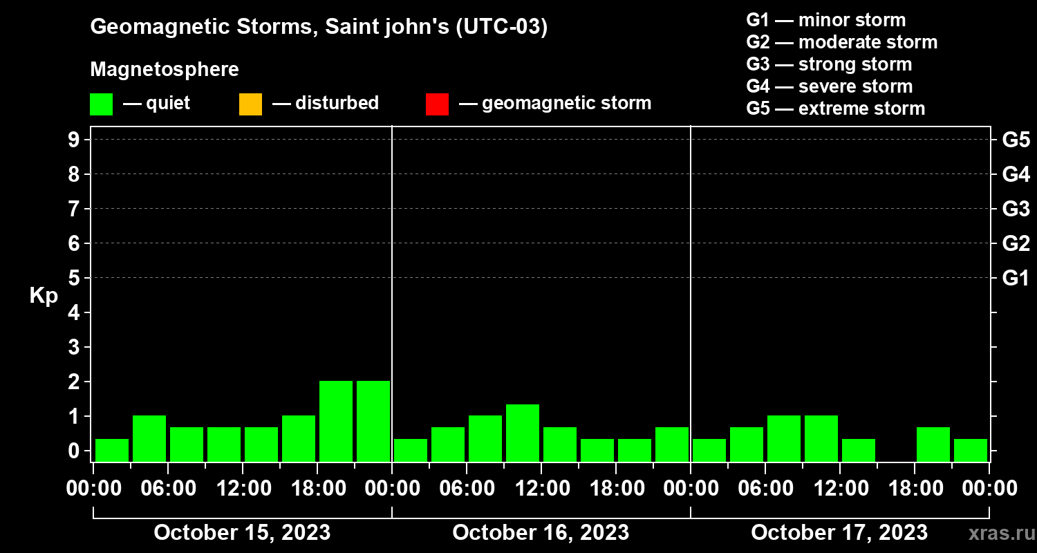 Geomagnetic storms in Saint john's — Oct 17, 2023