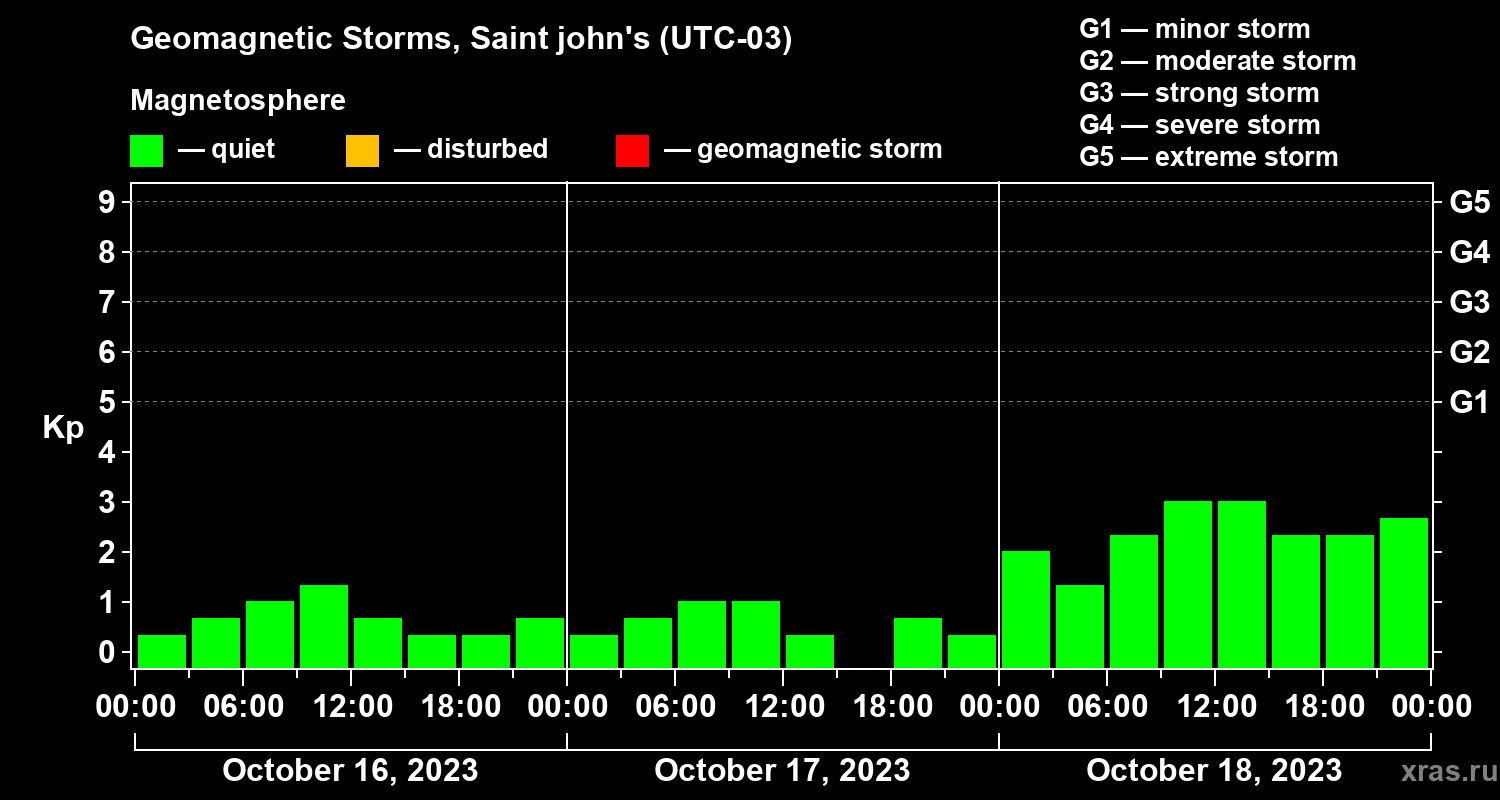 Geomagnetic storms in Saint john's — Oct 18, 2023