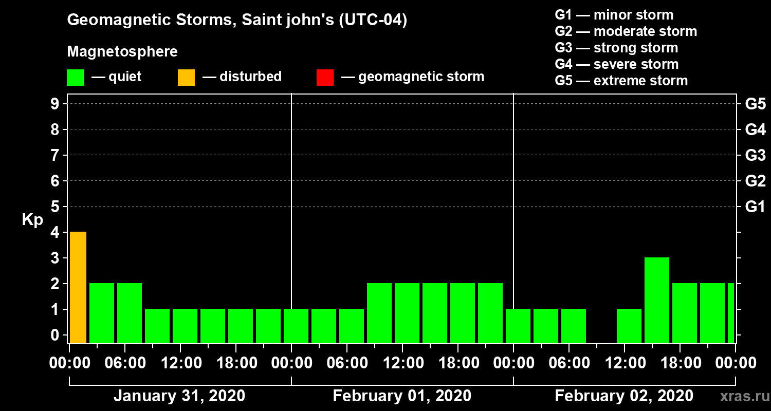 Geomagnetic storms in Saint john's — Feb 02, 2020