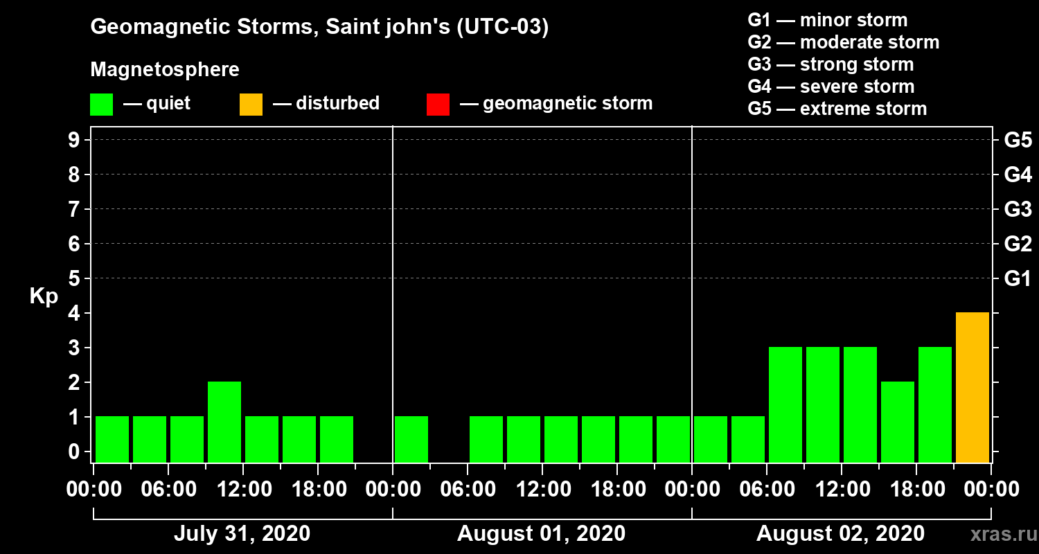 Geomagnetic storms in Saint john's — Aug 02, 2020