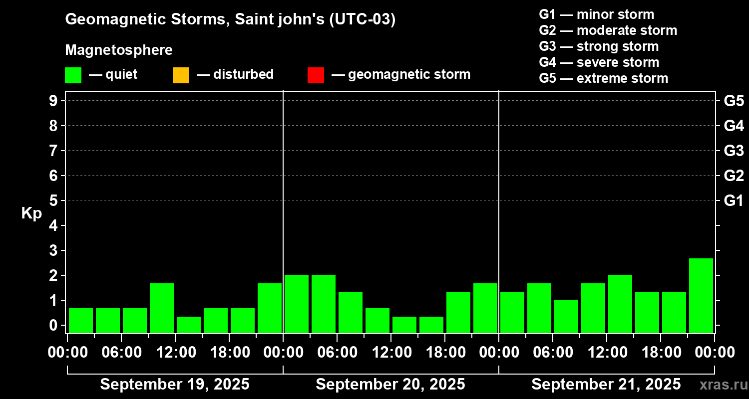 Geomagnetic storms in Saint john's — Sep 21, 2025