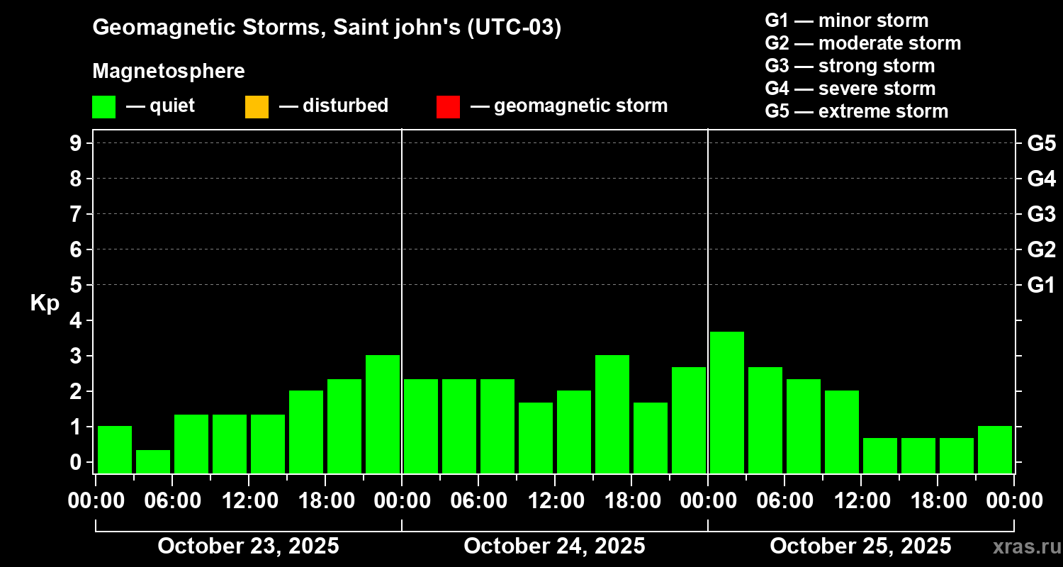 Geomagnetic storms in Saint john's — Oct 25, 2025