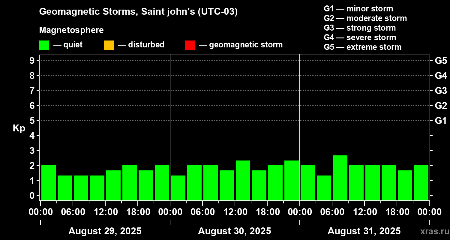 Geomagnetic storms in Saint john's — Aug 31, 2025