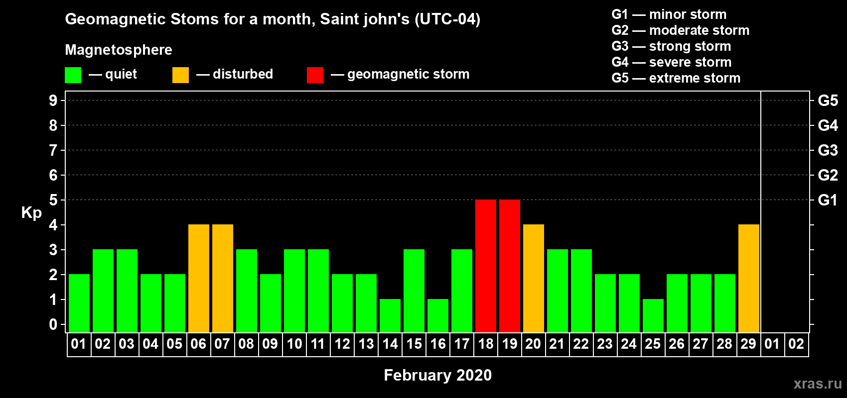 List of magnetic storms in February 2020
