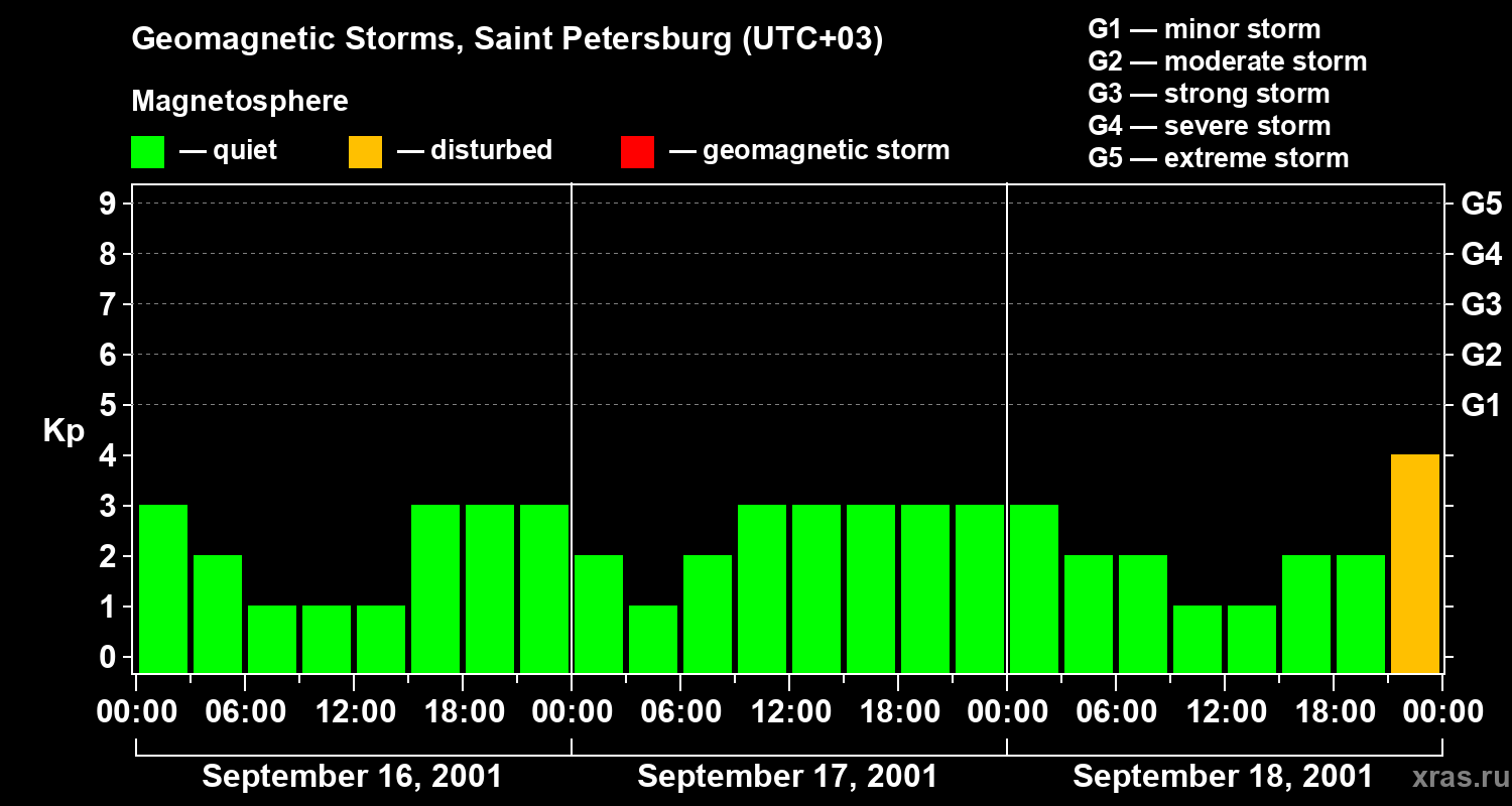 Geomagnetic storms in Saint Petersburg on Sep 18, 2001