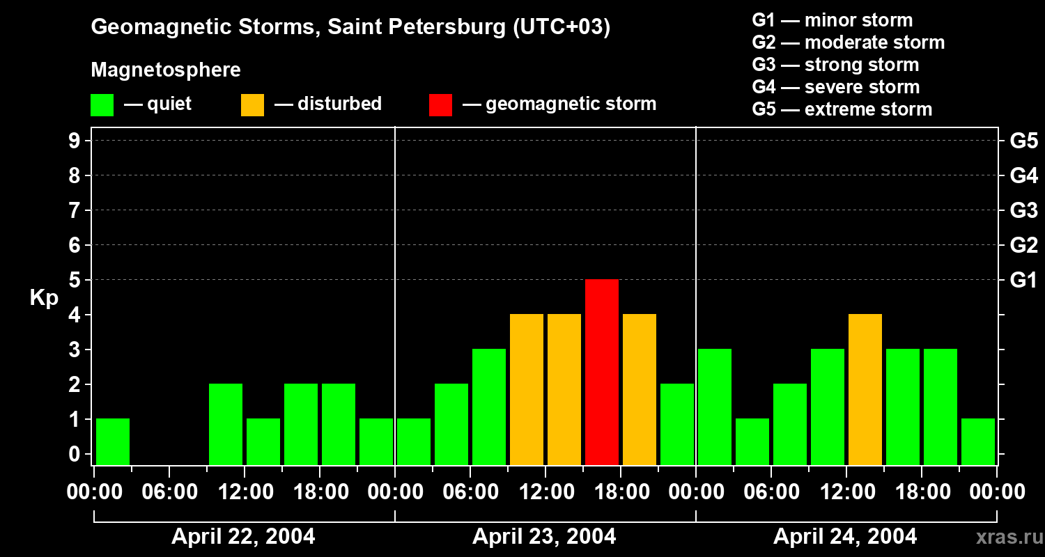Geomagnetic storms in Saint Petersburg on Apr 24, 2004