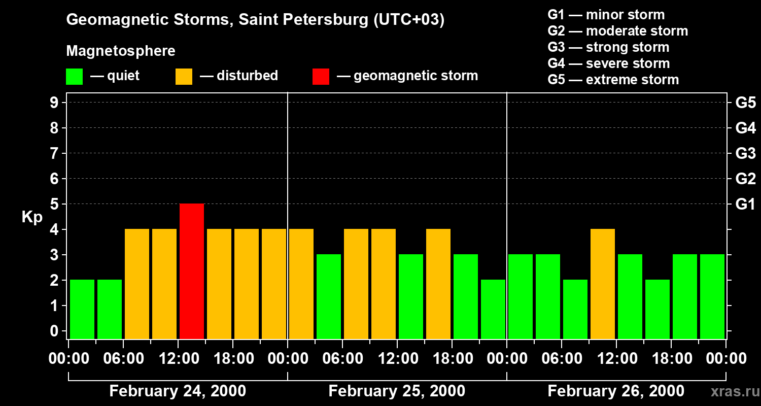 Geomagnetic storms in Saint Petersburg on Feb 26, 2000
