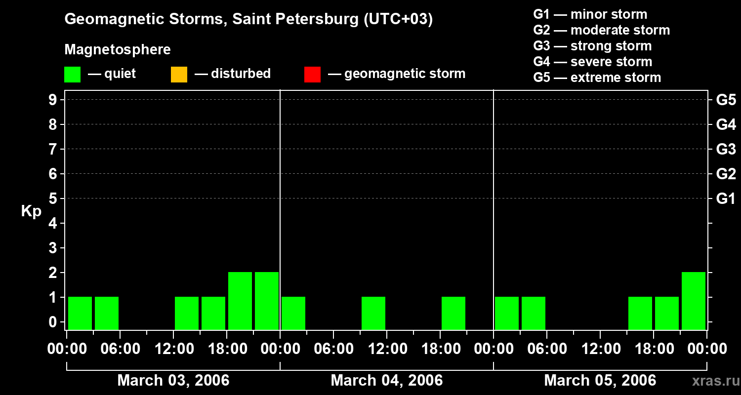 Geomagnetic storms in Saint Petersburg on Mar 05, 2006