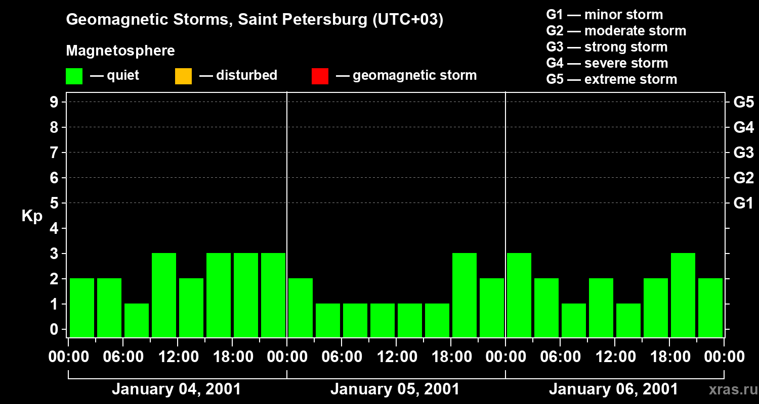 Geomagnetic storms in Saint Petersburg on Jan 06, 2001