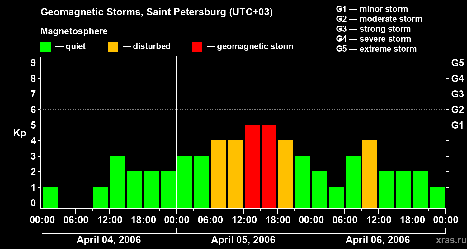Geomagnetic storms in Saint Petersburg on Apr 06, 2006