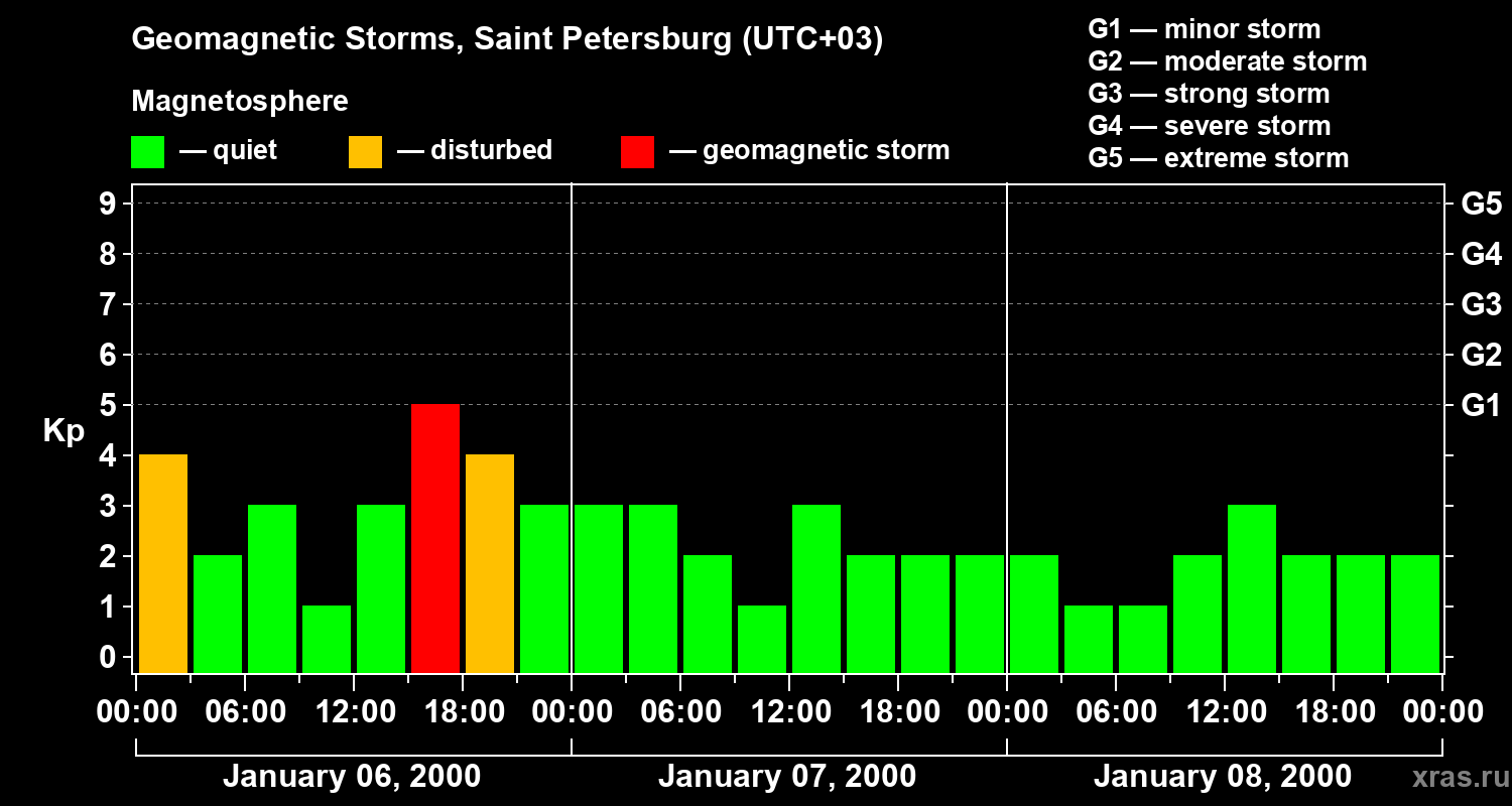 Geomagnetic storms in Saint Petersburg on Jan 08, 2000