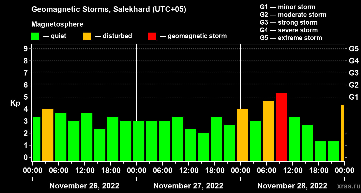 Geomagnetic storms in Salekhard — Nov 28, 2022